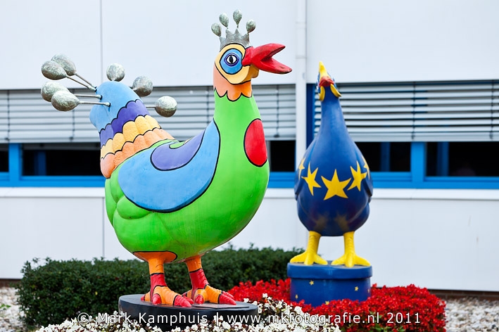 6 september 2011 - Boxmeer kleurrijke kippen in de binnentuin van Marel Stork