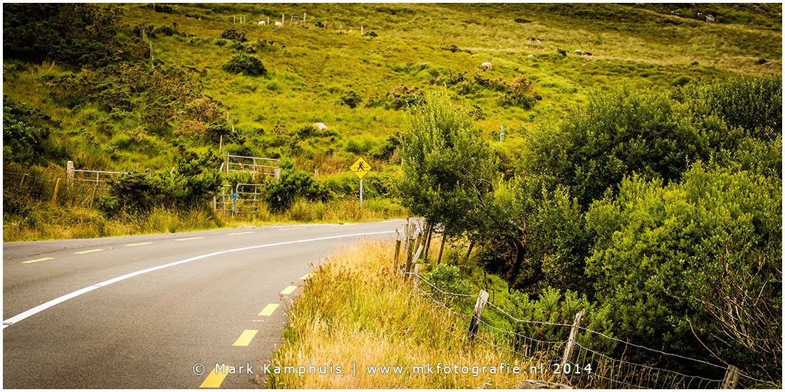 9 augustus 2014 - Glengariff (Ierland) als wandelaar/fietser ben je je leven niet zeker op de smalle wegen